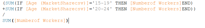We have absolute number of labour force in smaller age groups than expected, so we calculate the proportion of labour force falling in each of the three age groups