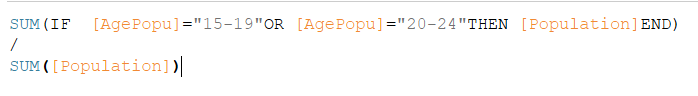 Using the function under “analysis” in menu, we are now able to create calculation fields we need. We want to have LFPR, proportion in population and market share of the three age groups.