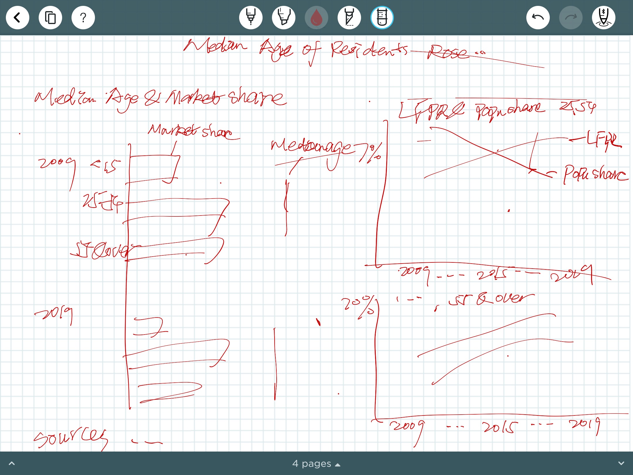 | The chart only shows the change in share of the residents labour force. To look into the causes of this change, we also want to show changes of LFPR and population. | Integrated another two charts showing change of LFPR and population throughout the period from 2009 to 2019 for age group “25-54” and “55&over” |